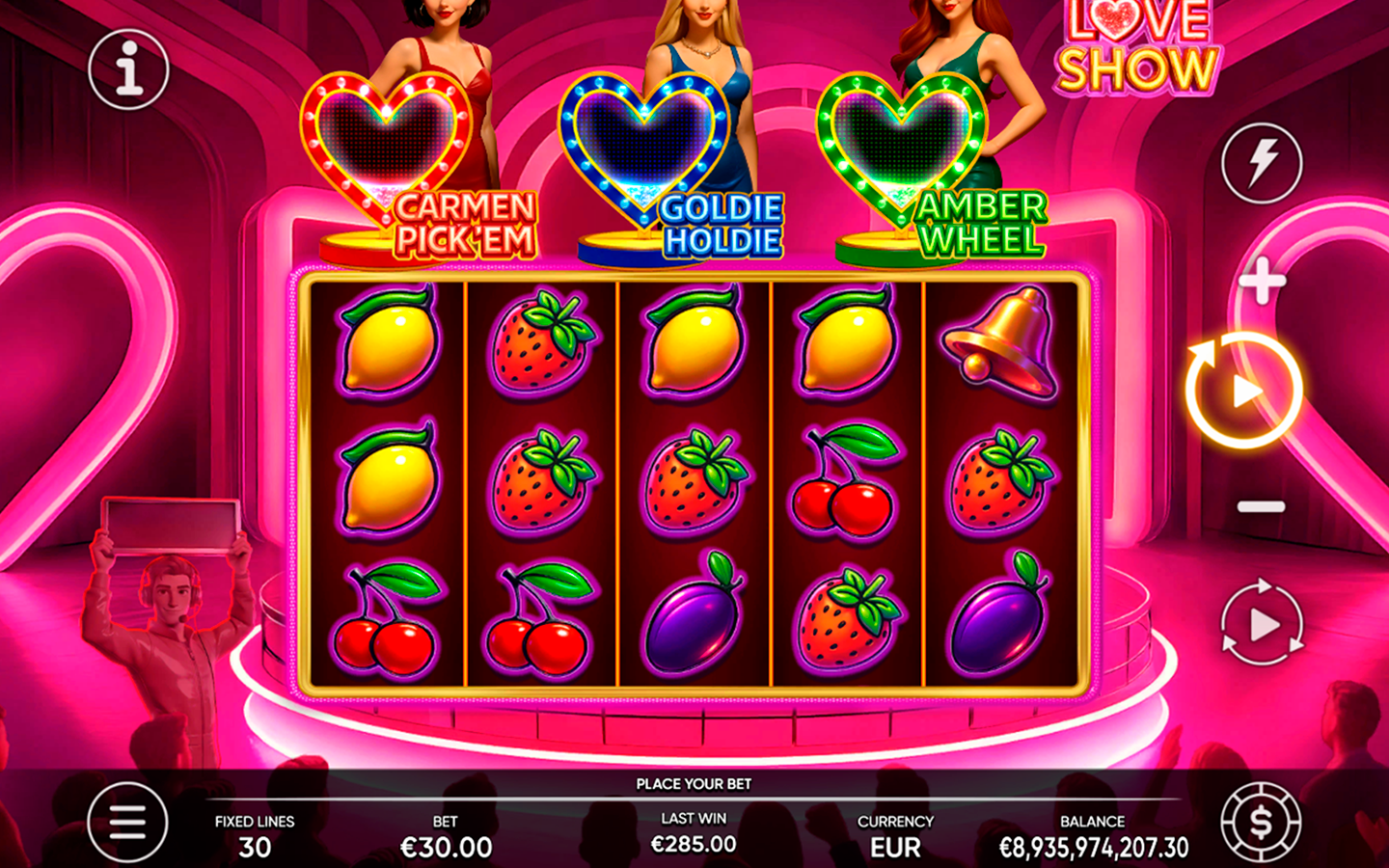Hosts Carmen, Goldie, and Amber each have their own unique personality, style, and way of stealing the show. Whatever their choice, every spin brings players closer to that winning connection. Play your cards right, and you might just find yourself competing with all three.